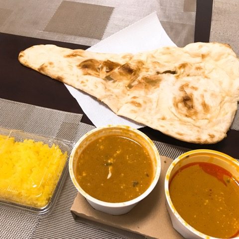 (チキンカレー&エビカレー、サフランライス&ナン)