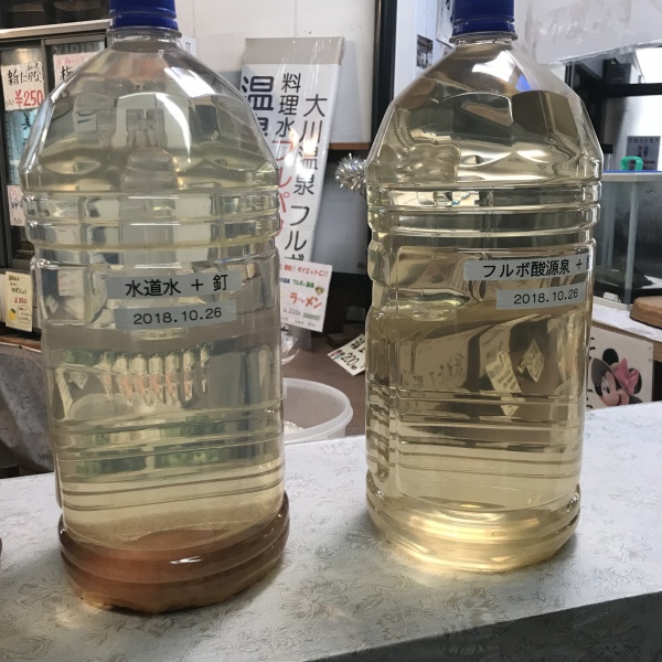 フルボ酸の温泉水に浸した方は10日経過しても新鮮度を保っている。