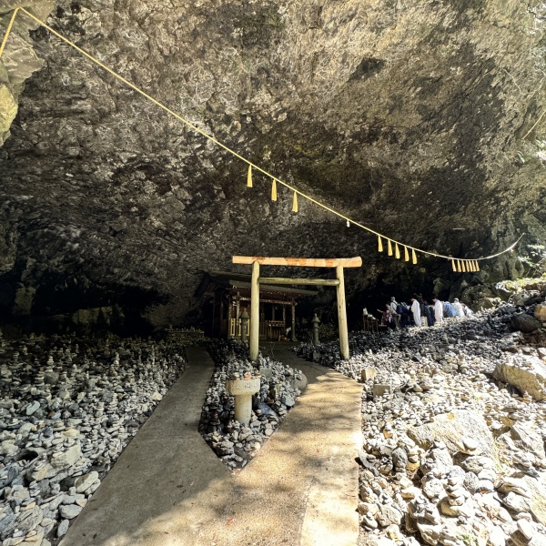 天地暗黒となり八百万(やおよろず)の神がこの河原に集まり神議されたと伝えられる大洞窟。