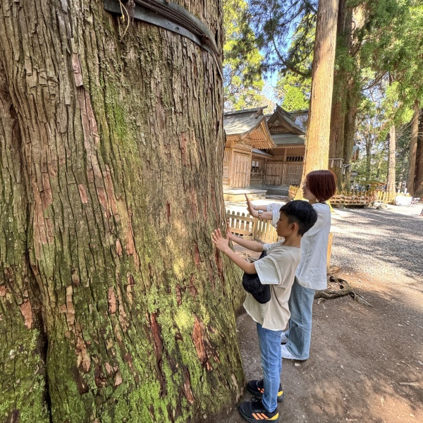 この夫婦杉の周りをカップルや友達同士で手を繋いで三周するといいことが起こるらしいです♫