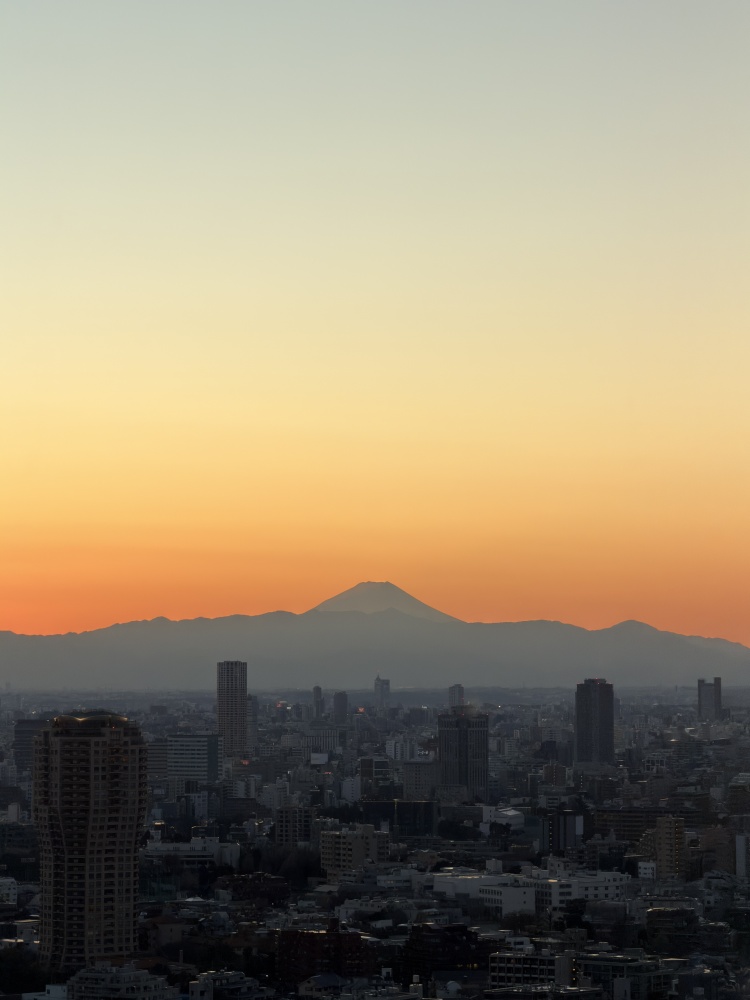 空が赤く染まり始めると、富士山のシルエットがくっきり。